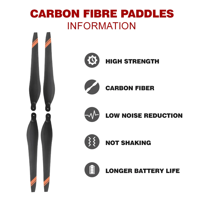 Manufactured from a high-strength Carbon Fiber Mix Plastics material, these propellers (Model TS-36190F) offer an excellent balance of rigidity and weight. Each piece weighs approximately 85g, contributing minimally to overall drone weight while maximizing thrust potential. Please refer to the product images for exact dimensional details.