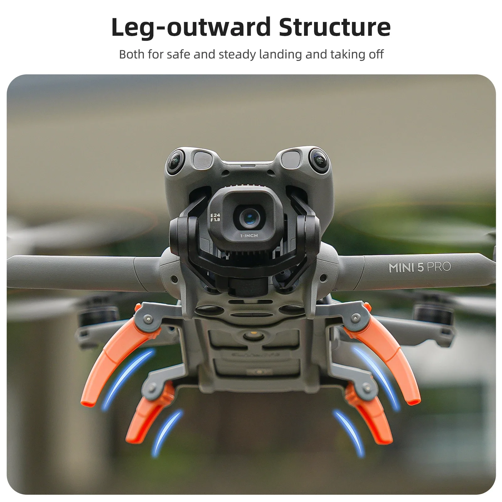 Engineered for reliability, the landing gear utilizes anti-slip mushroom head locks and splayed legs to guarantee a firm, secure connection that will not detach during flight. The lightweight design (weighing only 37g) ensures stability without negatively affecting your Mini 5 Pro’s flight characteristics.
