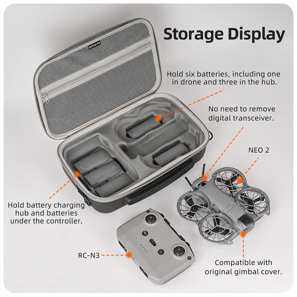 Keep your valuable DJI Neo 2 safe from impacts, dust, and moisture with this premium portable carrying case. Engineered with a robust hard shell, this travel storage bag offers superior shock absorption and compression resistance, ensuring your drone remains secure during transit and storage.