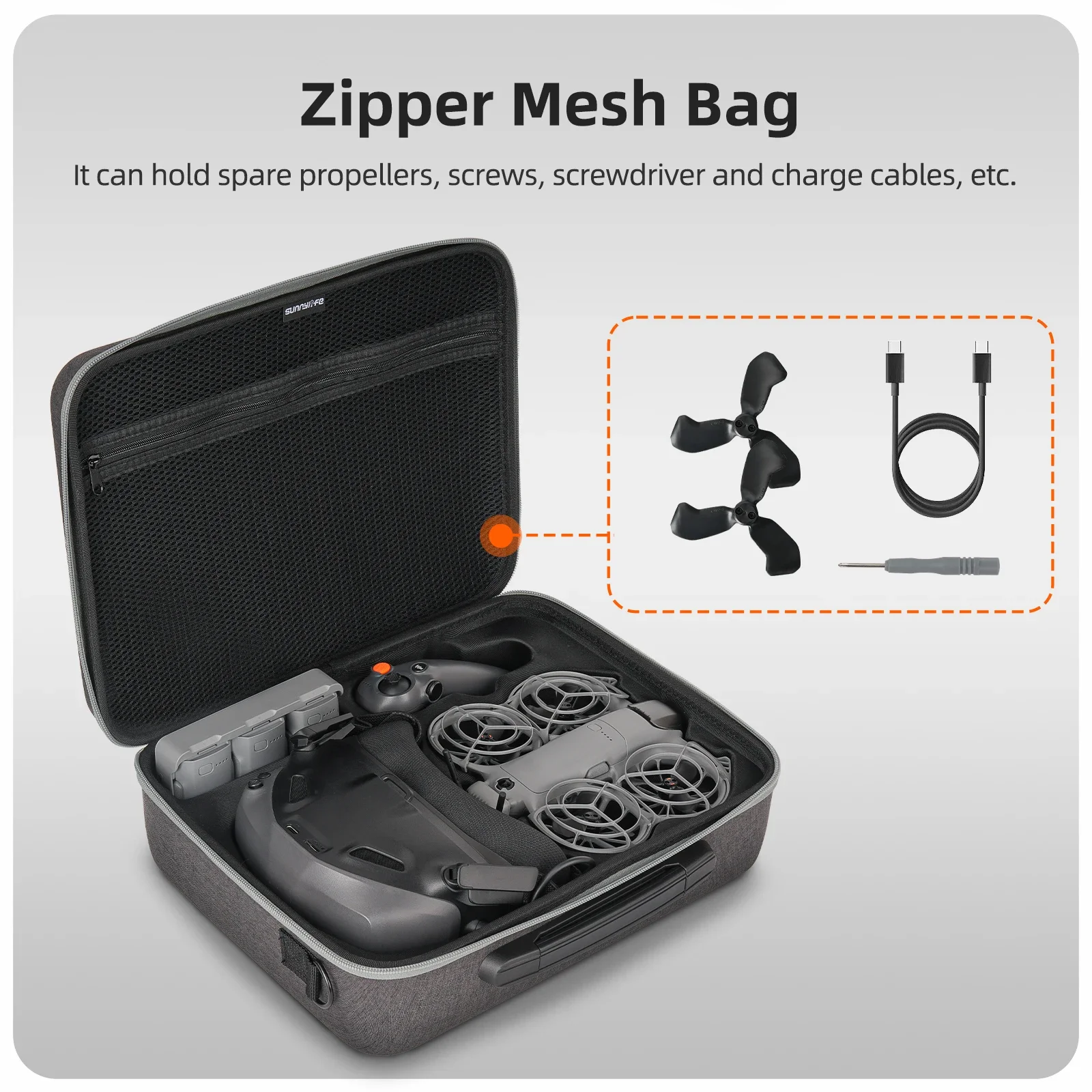 - Protection: Hard-shell design with precision shock-absorbing internal trays. Compatible with the original gimbal cover; no need to remove the digital transmitter.